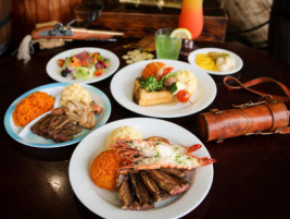 ・メイン料理(プレート式 ショートリブ、チキン、海老、パスタサラダ、レッドライス) |